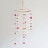 Een vrolijke mobiel met vilten balletjes en houten kralen voor boven de wieg of box of welke plek je hem ook maar wilt hangen.