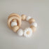 De stevige, flexibele siliconen kralen masseren het tandvlees en zorgen dat de pijn verminderd. Het hout is harder en geeft daarmee een andere druk op het tandvlees. Zo kunnen kindjes zelf kiezen wat ze prettig vinden.