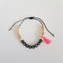 Kralen: Houten kraaltjes (6 mm) en zwart met witte letterkralen.